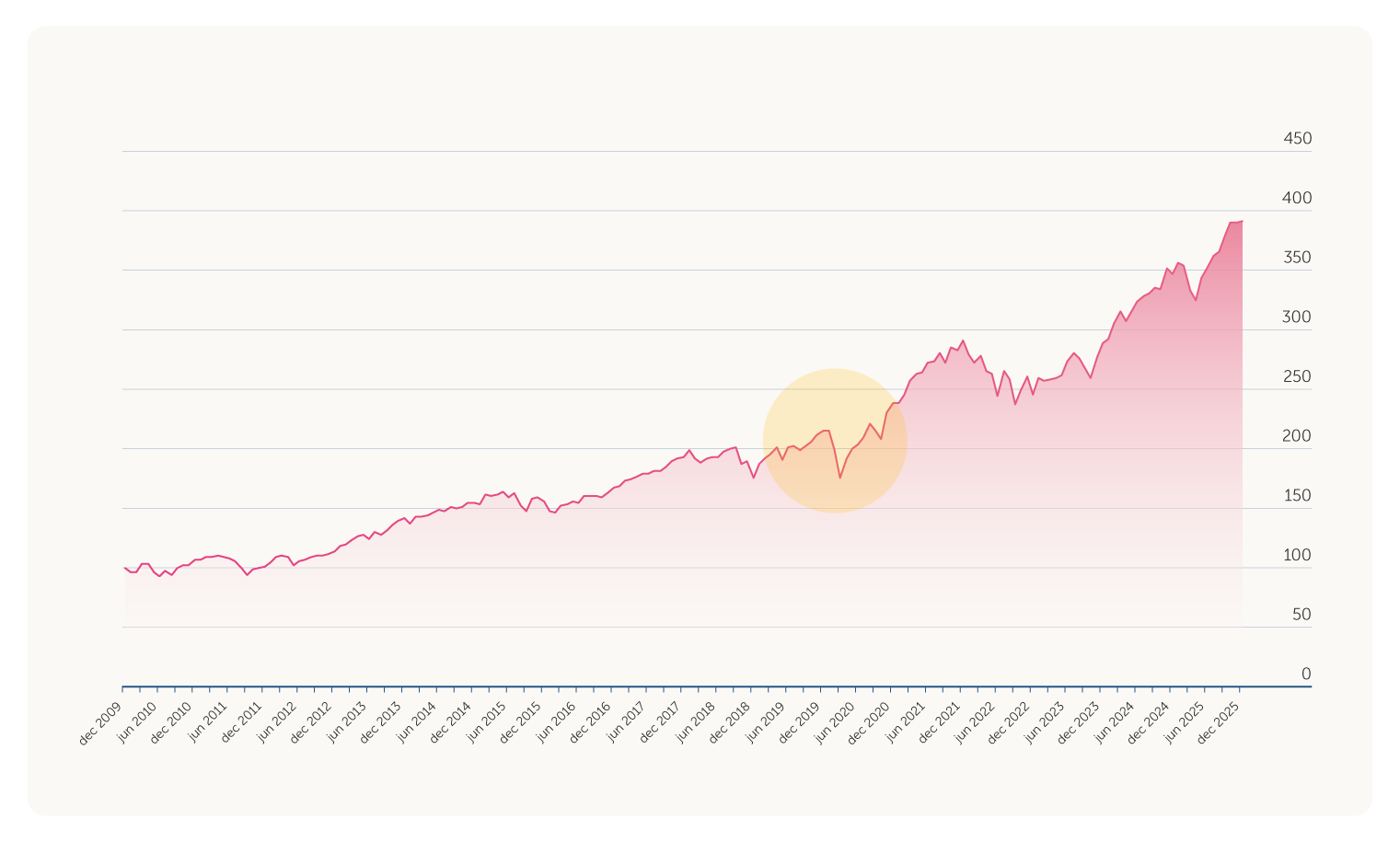 De beste manier om met zo’n crisis om te gaan? Rustig ademhalen, niet meegaan in de waan van de dag en denken aan later. Dan is de kans op een mooi rendement het grootst.